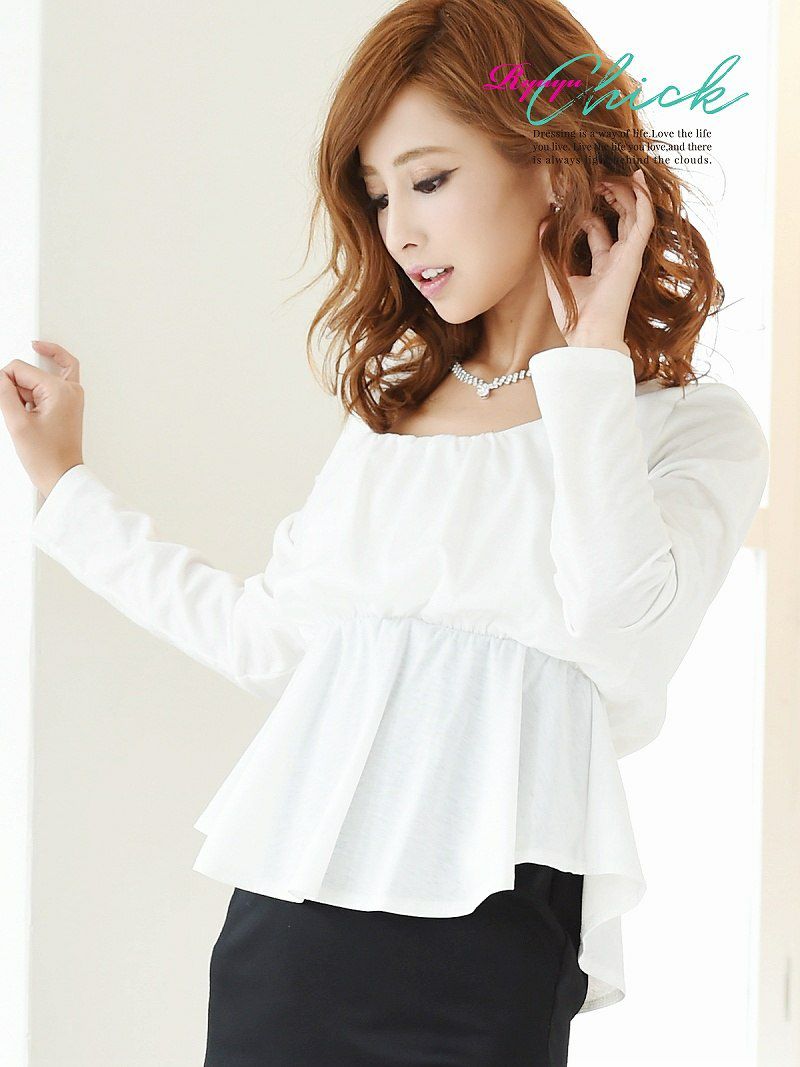 訳ありふんわり可愛い 【訳ありアウトレット】長袖ペプラムcuteキャバクラミニワンピ【RyuyuChick】(S/M/L/XL/XXL)(ブラック/ホワイト)
