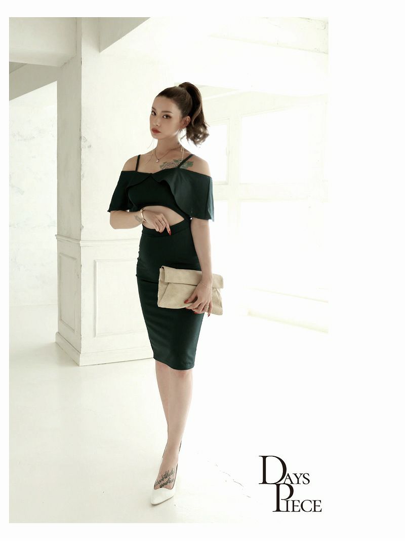 訳あり可憐キャバワンピ 【訳ありアウトレット】おなか魅せセクシー袖付き韓国キャバワンピ【DAYS PIECE】(M)(ブラック/レッド/グリーン) ptpl