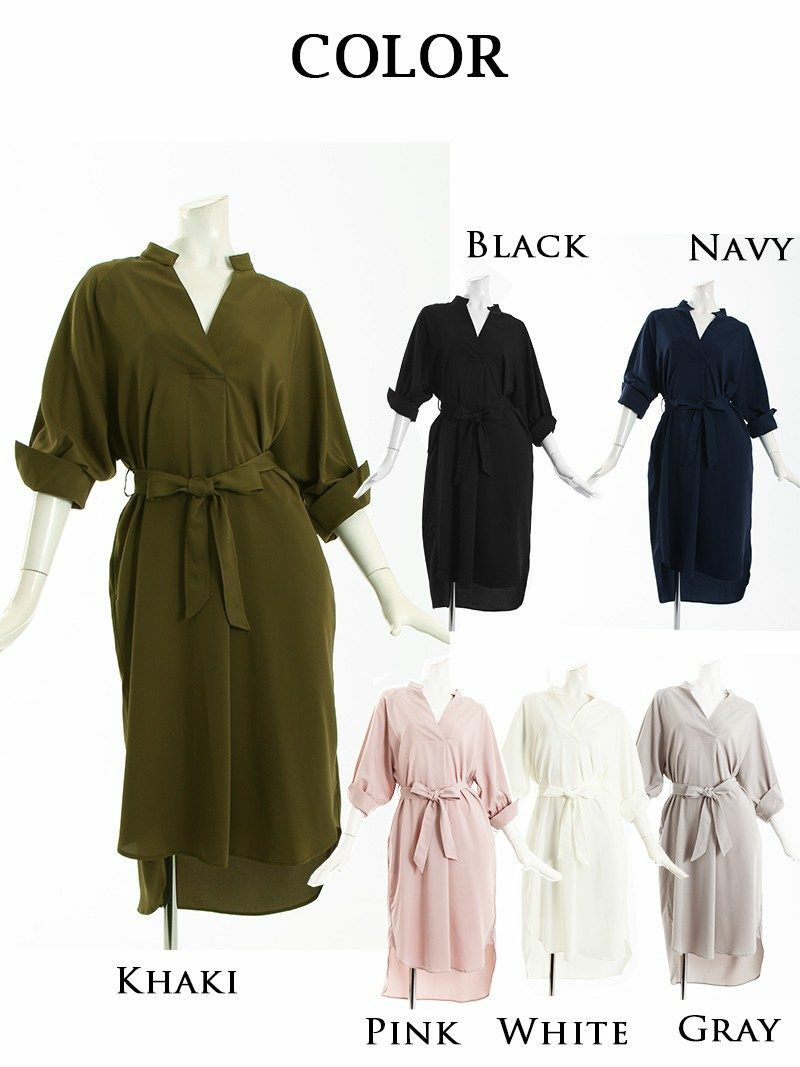 6. 【訳ありアウトレット】上品クールゆったり膝丈韓国キャバワンピース【DaysPiece】(M)(ブラック/ホワイト/カーキ/グレー/ピンク/ネイビー) ptpl