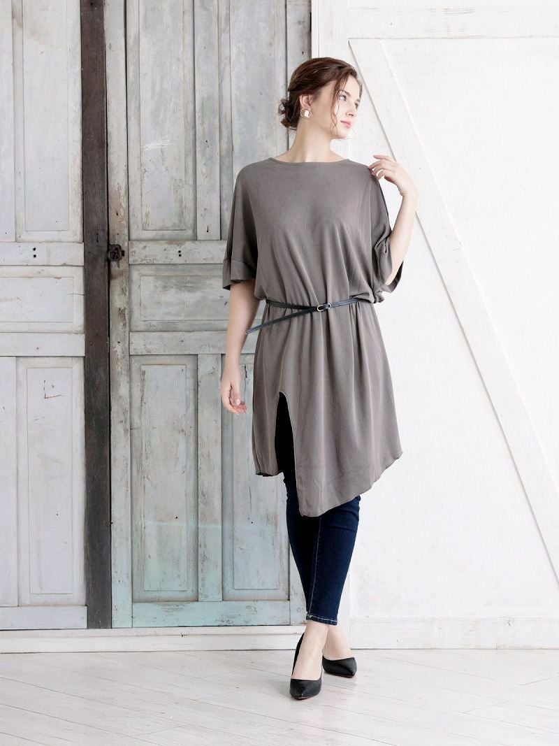アシンメトリーな袖デザインが個性的な韓国風キャバワンピース。ドルマンスリーブと五分袖が絶妙なバランスを作り、ゆったりとしたシルエットで快適な着心地を提供します。