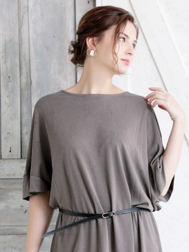 ベルト付きでウエストを引き締め、体型カバーにも優れたデザイン。シンプルな無地で、さまざまなシーンに適したパーティードレスとしても活躍します。