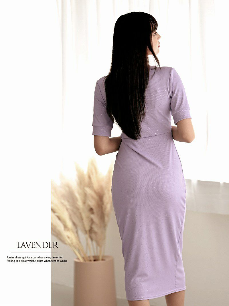 6. 【訳ありアウトレット】きらきらラメ入りミディ丈タイト韓国キャバワンピース【DAYS PIECE】(S/M/L)(ラベンダー/グリーン/ブラック) ptpl