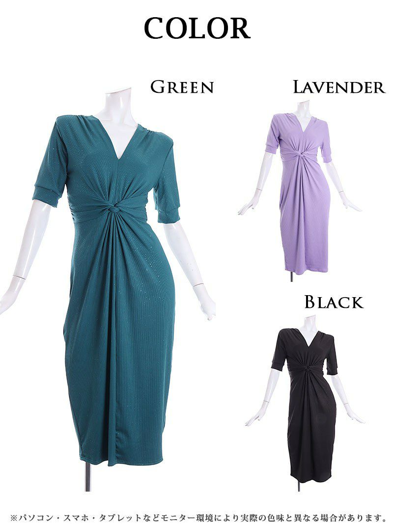 4. 【訳ありアウトレット】きらきらラメ入りミディ丈タイト韓国キャバワンピース【DAYS PIECE】(S/M/L)(ラベンダー/グリーン/ブラック) ptpl