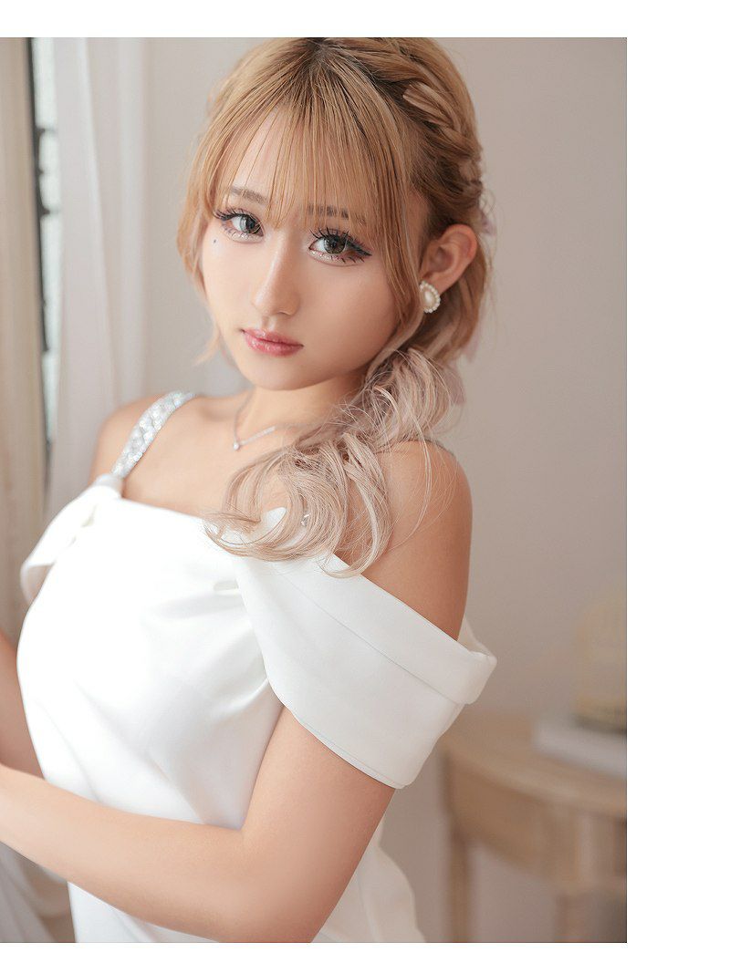 華やかなビジューが魅力的なオフショルキャバドレス。高級感とセクシーさを両立!