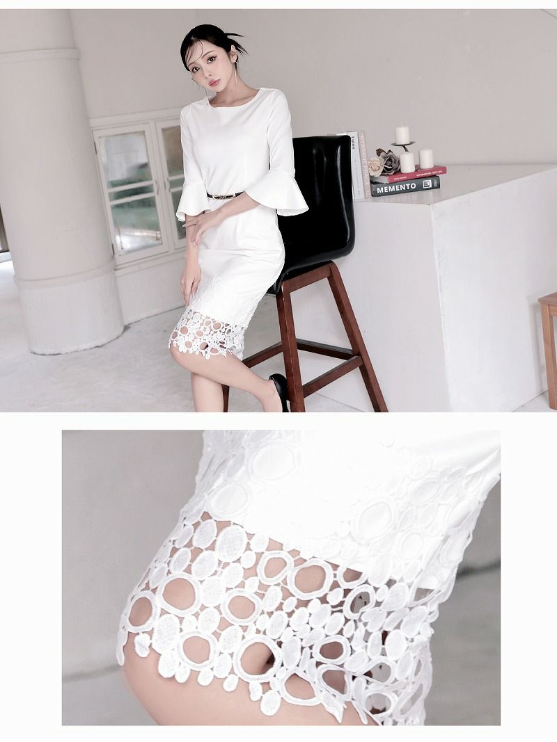 ホワイトレーススリーブタイト韓国ワンピース KANO 着用 ラウンジワンピース【DAYS PIECE】