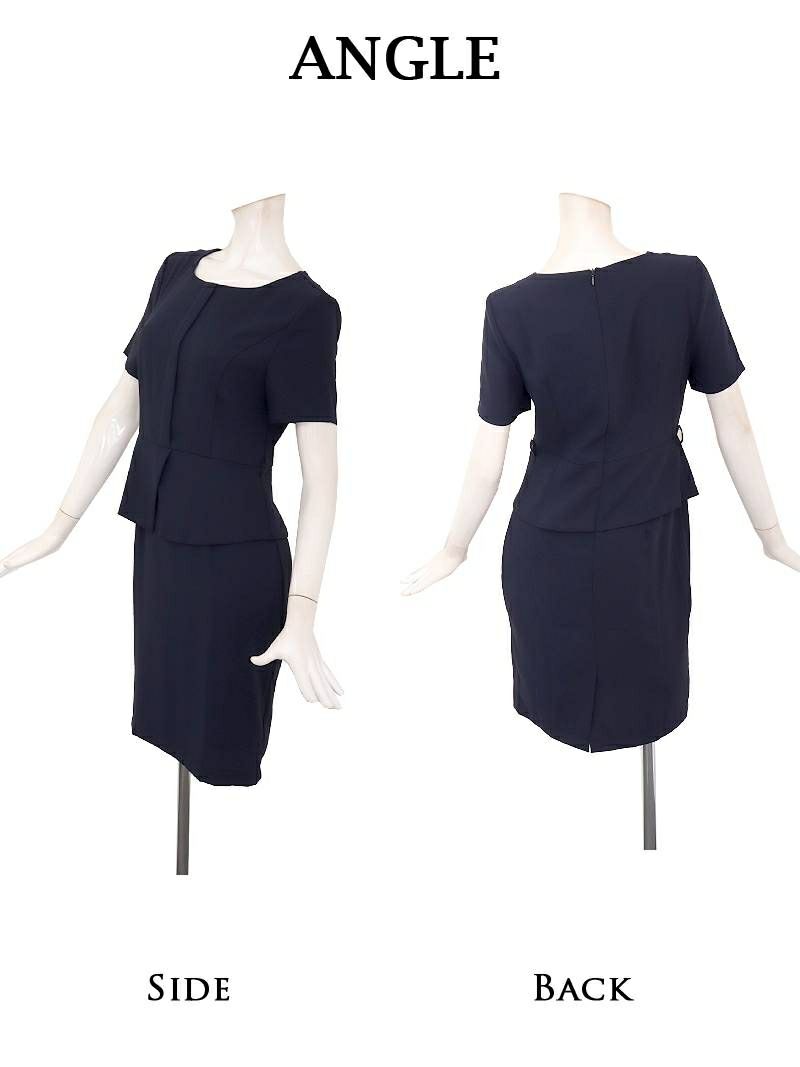 5. 上品ペプラム袖ありキャバワンピース 加賀美早紀 着用 キャバドレス【Belsia】(S/M/L/XL(2L)/XXL(3L))(アイボリー/ネイビー)