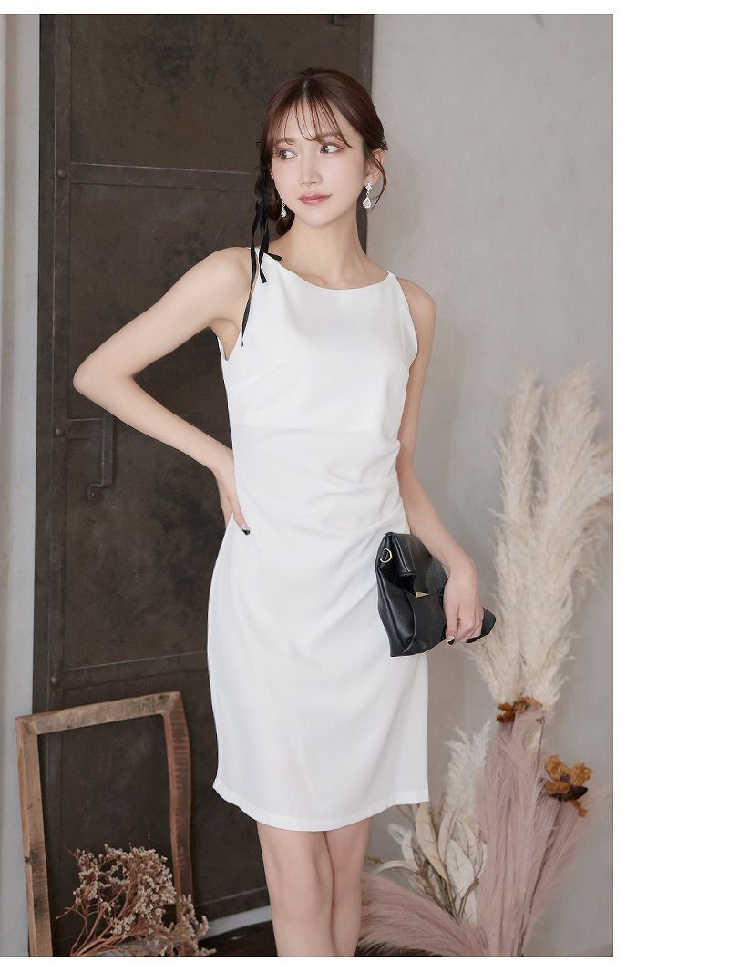 シンプルながらも着るだけでサマになる、タイトな無地のミニドレスです。