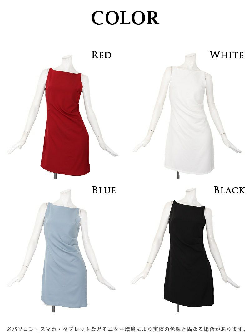 お悩み解決できる主役級ドレス シンプルギャザーワンピースドレス【Ryuyu】(S/M/L/XL(2L))(ブラック/レッド/ホワイト/ブルー)