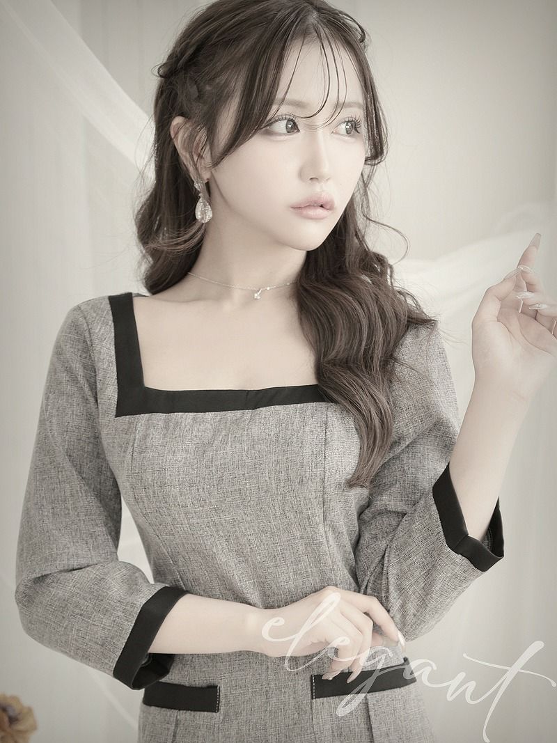 グレー五分袖タイト膝丈キャバワンピース りせり 着用 キャバドレス【RyuyuChick】