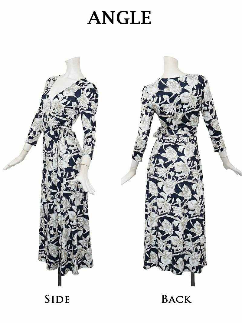 華やかな大判フラワープリントが目を惹くマキシ丈ラップワンピース。