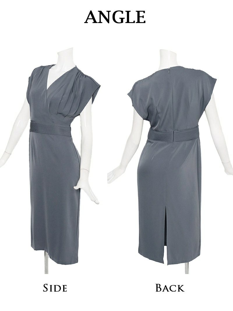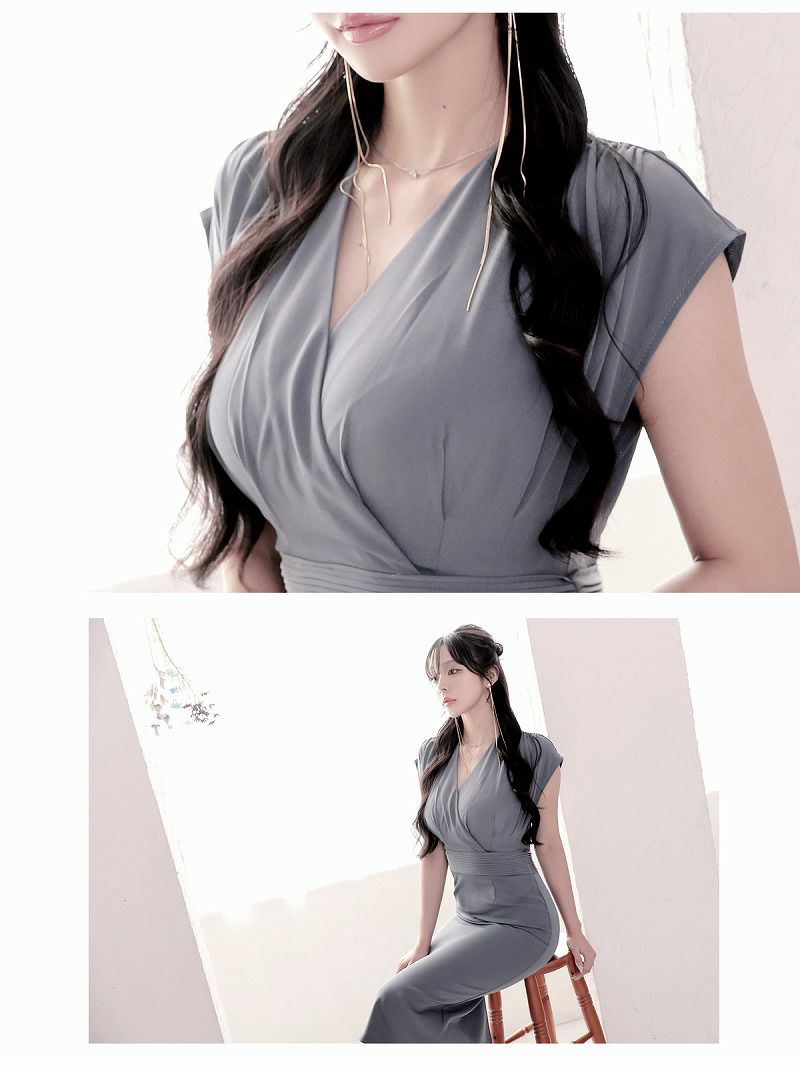 上品グレーでエレガントに。美脚を叶える韓国ドレス 先行予約割¥6980→¥6630!※一部予約販売※カシュクール風ノースリーブ膝丈韓国ワンピース KANO 着用 キャバワンピース【DAYS PIECE】(S/M/L/XL)(グレー)