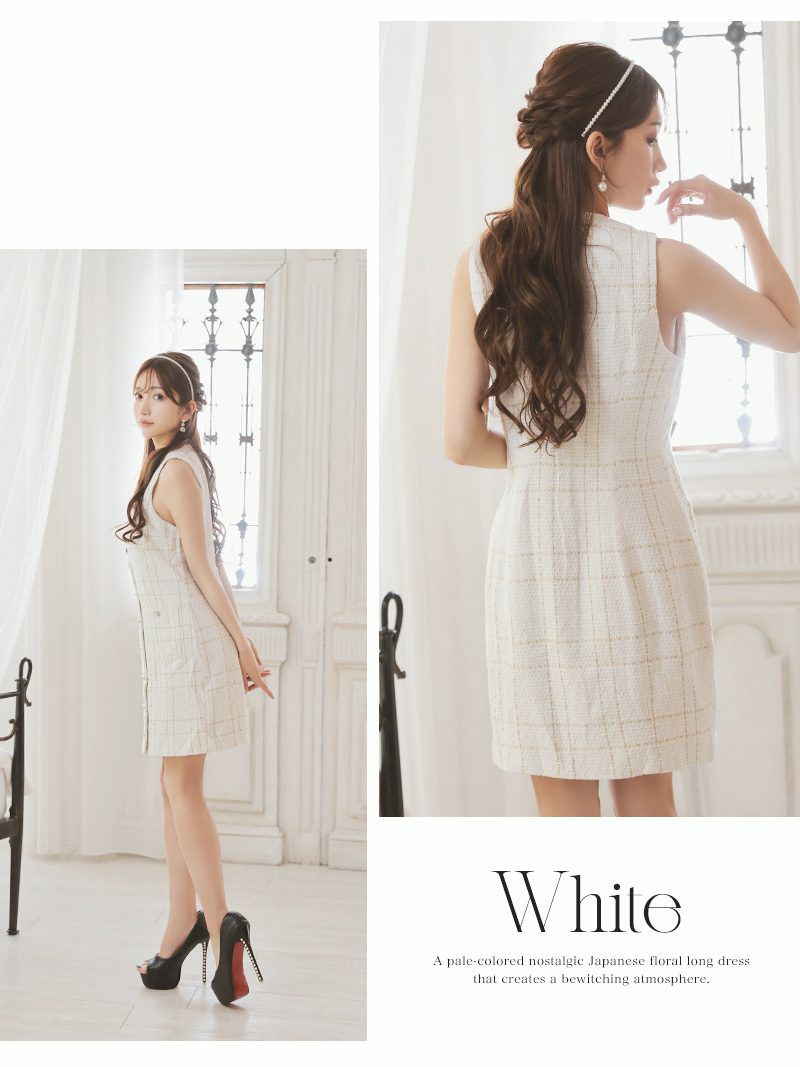 上品できれいめなスタイルが叶う、ツイード素材のキャバワンピースです!