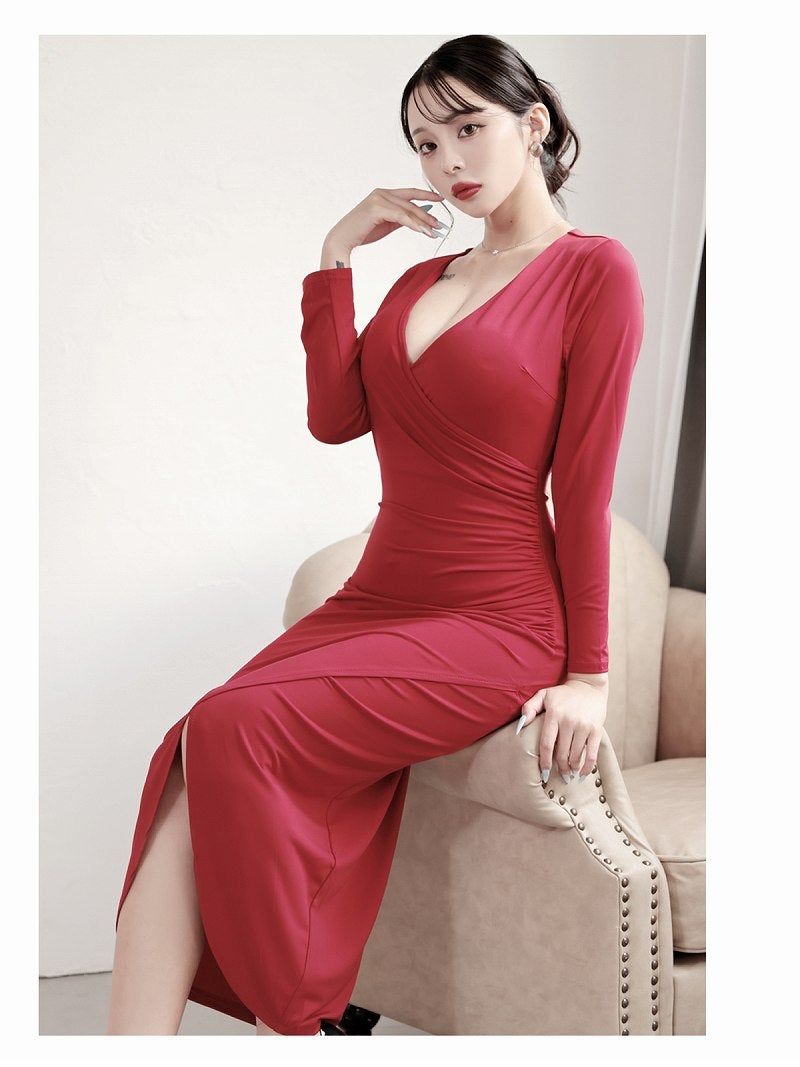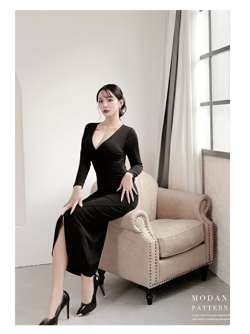 ※一部予約販売※背中みせデザインで色気を放つ韓国風長袖ワンピース KANO 着用 キャバワンピース【DaysPiece】