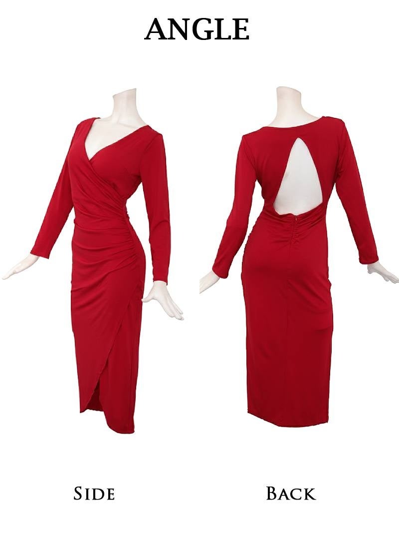 4. ※一部予約販売※背中みせデザインで色気を放つ韓国風長袖ワンピース KANO 着用 キャバワンピース【DaysPiece】(S/M/L/XL(2L))(ワイン/ブラック)