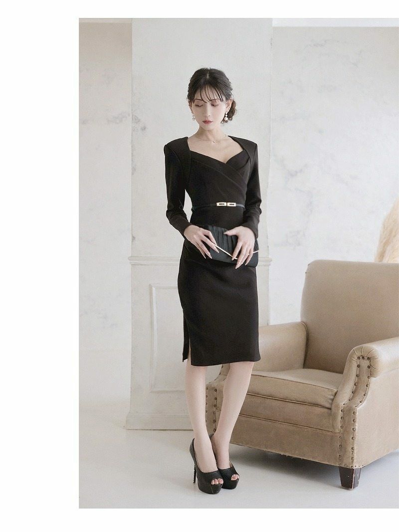 ※一部予約販売※クロスデザインの胸元が艶やかなカシュクールギャザー長袖タイトキャバワンピース 加賀美早紀 着用キャバドレス【BelsiaLUX】