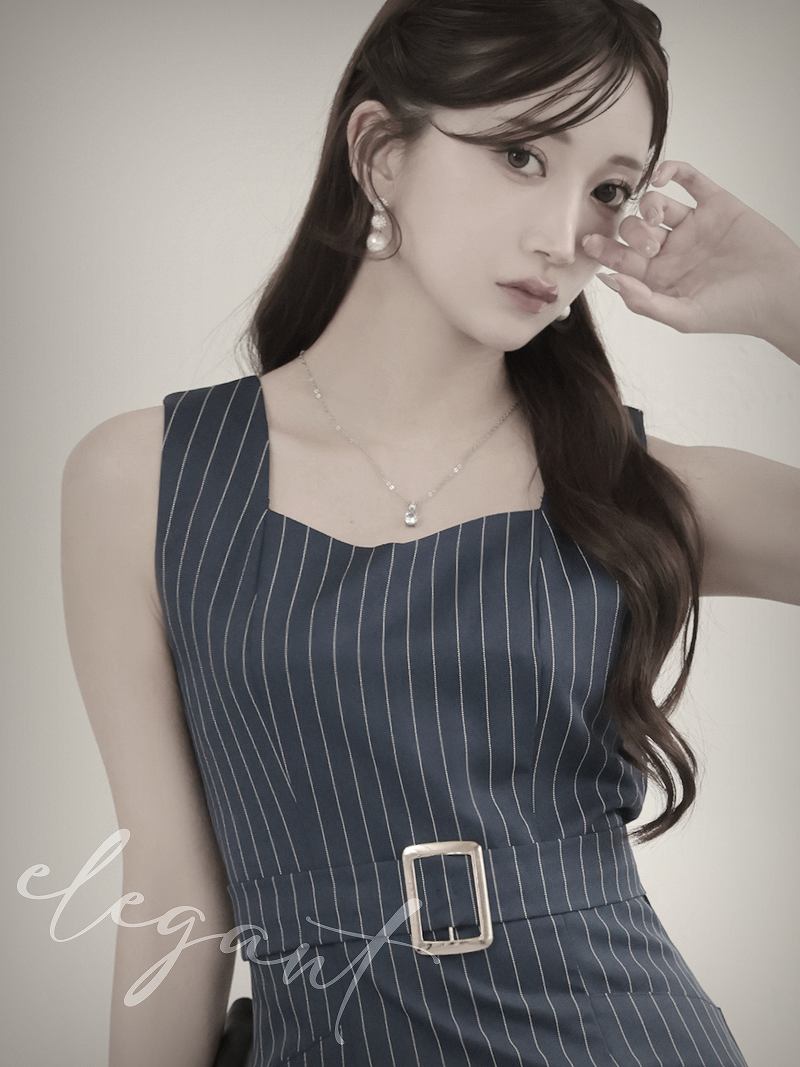 ピンストライプ柄が都会的で知的な印象を与えてくれるネイビーワンピースです!