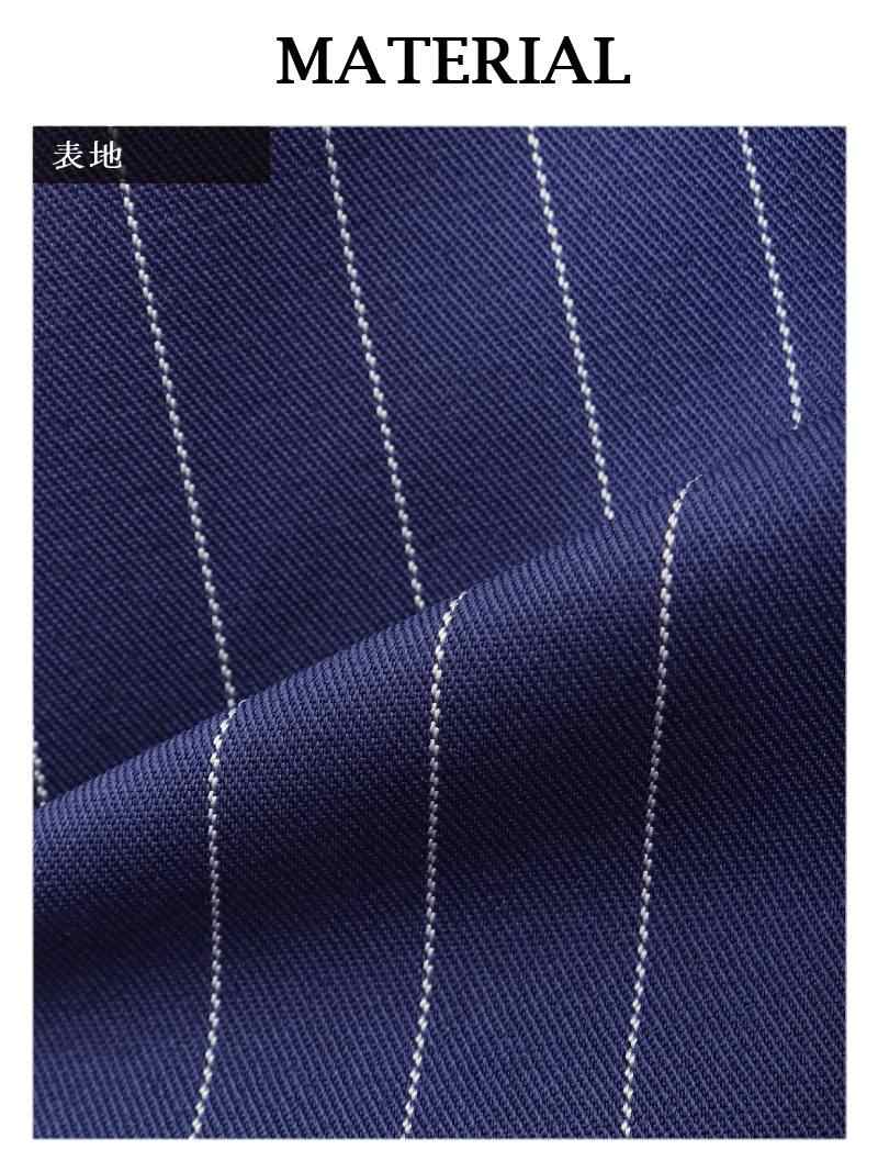 6. 洗練されたピンストライプ柄が知的な美しさを引き立てるハイウエスト切り替えのネイビー膝丈大人ワンピース 【Ryuyu】(S/M/L/XL(2L))(ネイビー)