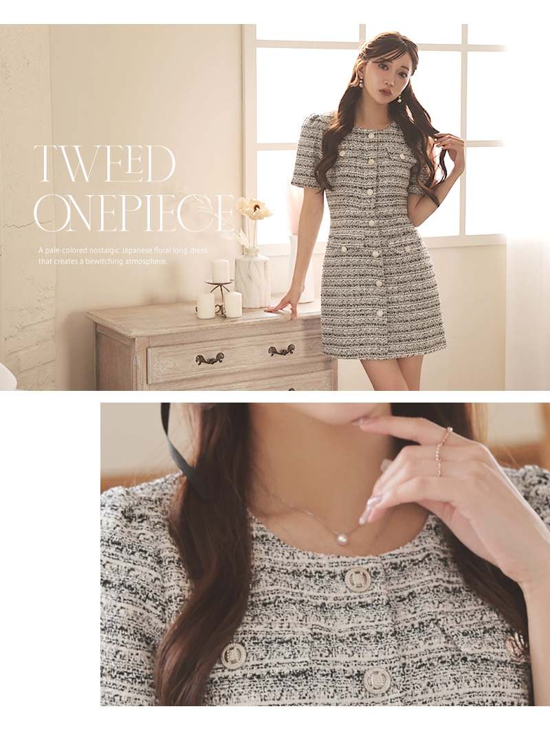 肉厚ツイードを使用した高級感あふれるミニドレスです。