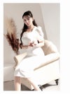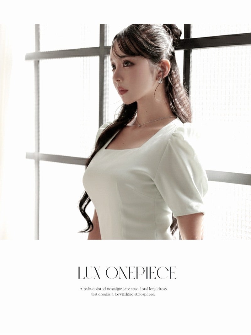 上品なパフ袖と美デコルテで魅せる、しっとり質感の大人韓国styleワンピース。 美デコルテを強調するスクエアネックとパフ袖が上品な大人韓国風ミディ丈キャバワンピース KANO 着用 キャバワンピース【DaysPiece】(S/M/L)(ホワイト/グリーン)