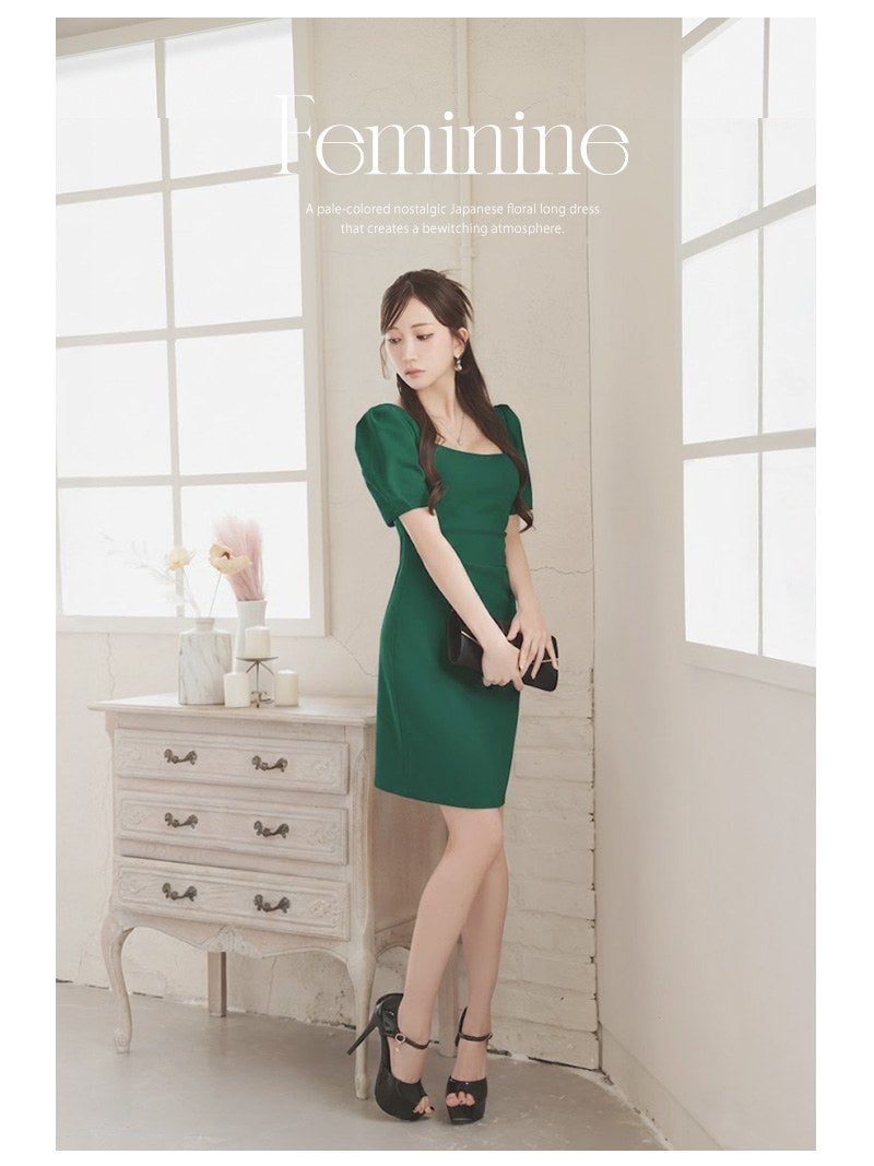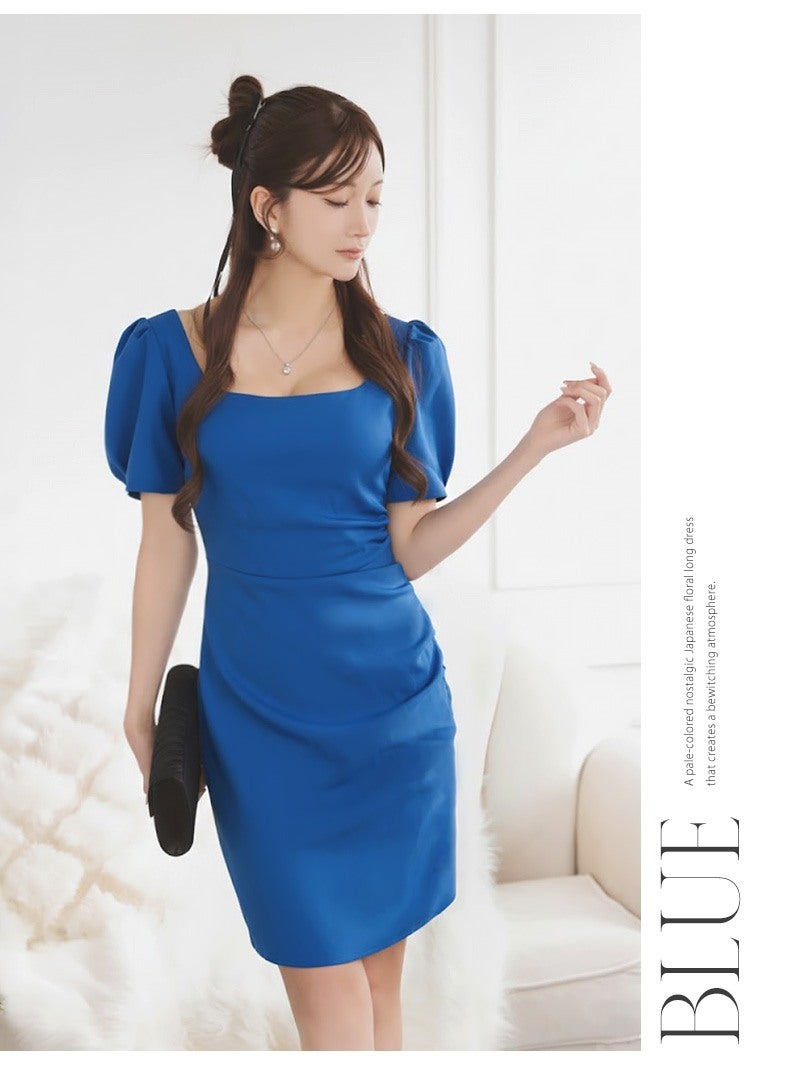 7. ※一部予約販売※二の腕カバーも叶うパフ袖が大人可愛いサイドギャザー入りタイトキャバワンピース 【Ryuyu】(S/M/L)(ブルー/ブラック/グリーン/ホワイト)