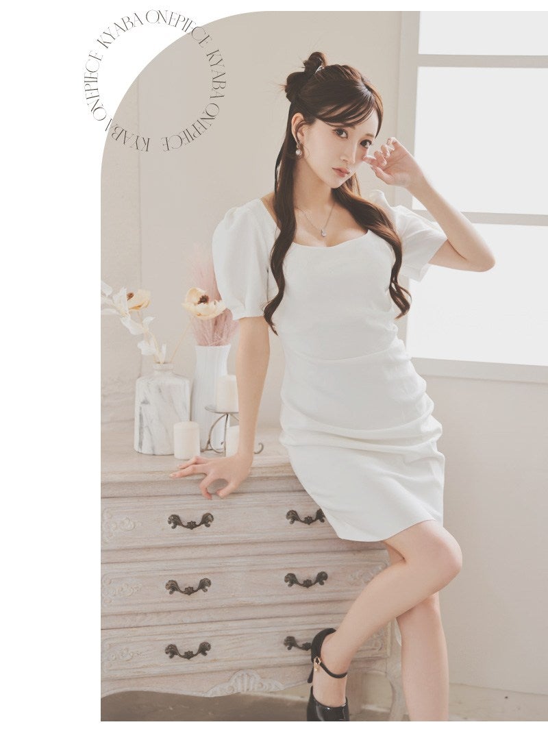 ※一部予約販売※二の腕カバーも叶うパフ袖が大人可愛いサイドギャザー入りタイトキャバワンピース 【Ryuyu】