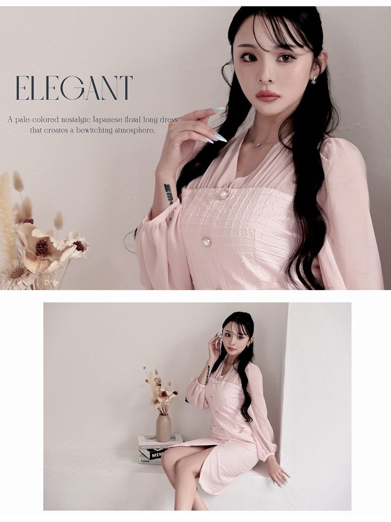 7. シフォン袖のボリューム感が大人可愛い韓国風ワッフル生地ワンピース KANO 着用 キャバワンピース【DaysPiece】(S/M/L/XL(2L))(ピンク/ベージュ)
