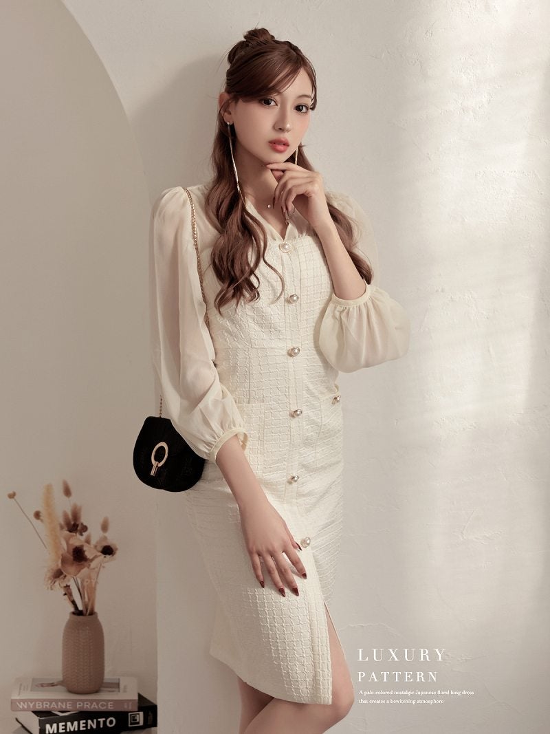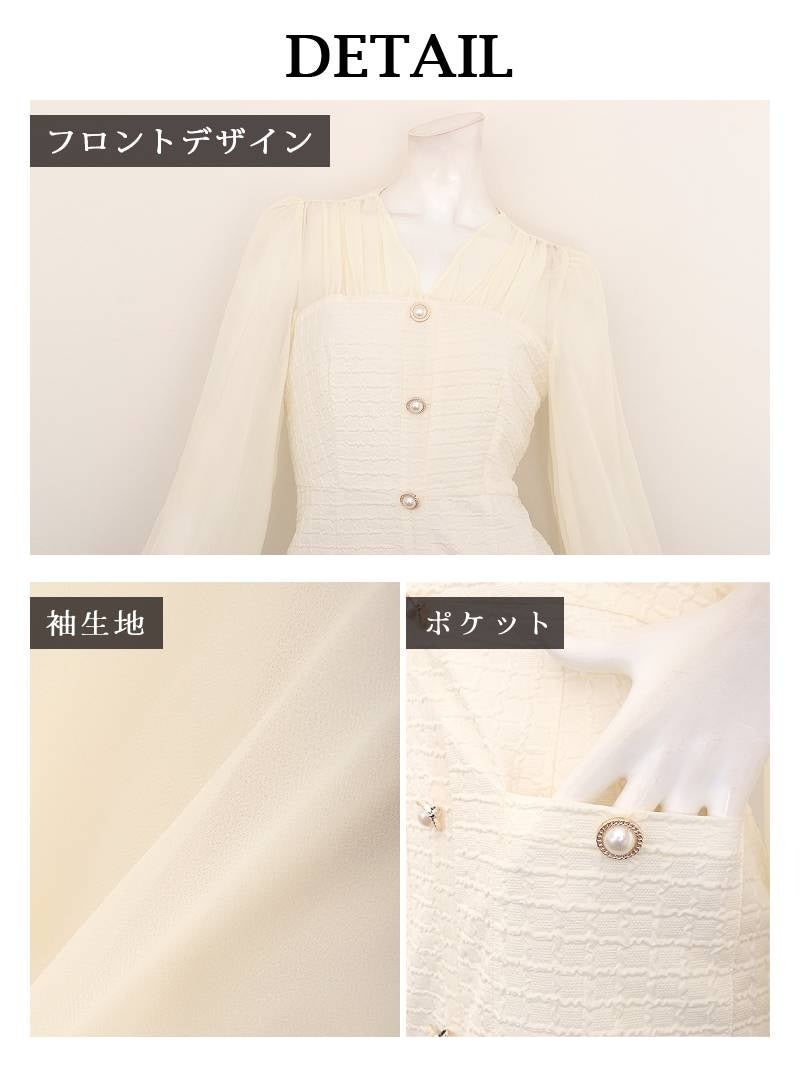 シフォン袖のボリューム感が大人可愛い韓国風ワッフル生地ワンピース KANO 着用 キャバワンピース【DaysPiece】