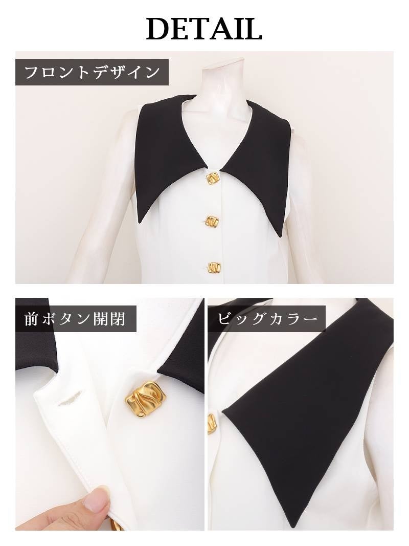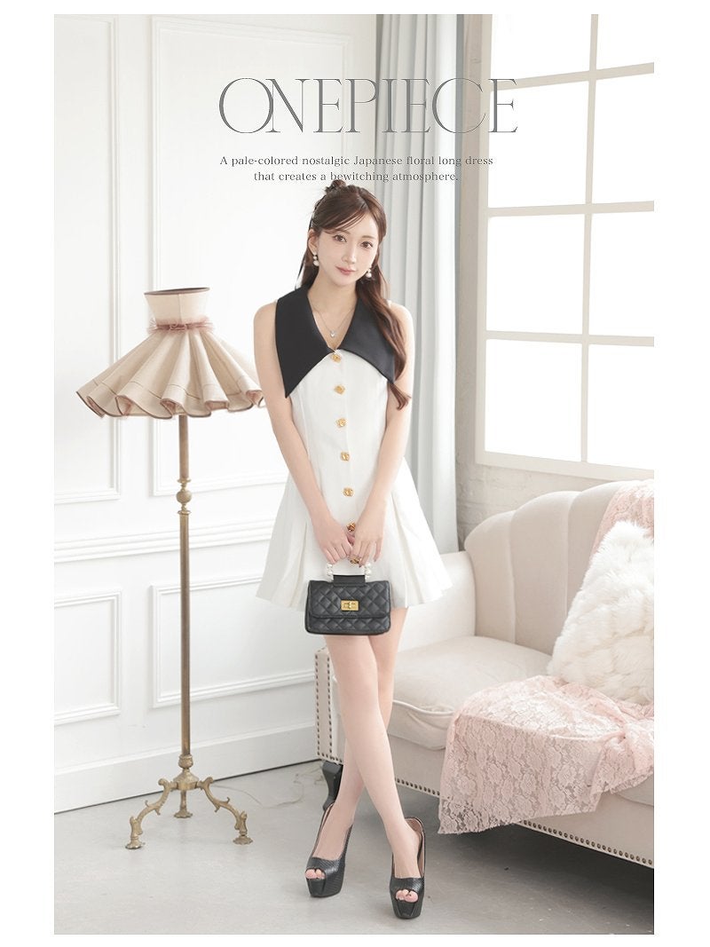 4. ビッグ襟で小顔効果なドール風ノースリキャバワンピース【Ryuyu】(S/M/L)(ブラック/ホワイト)