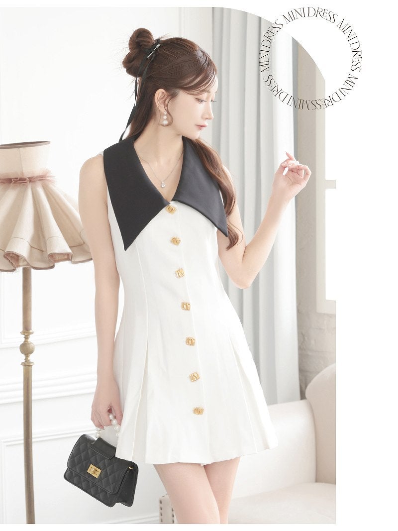 6. ビッグ襟で小顔効果なドール風ノースリキャバワンピース【Ryuyu】(S/M/L)(ブラック/ホワイト)