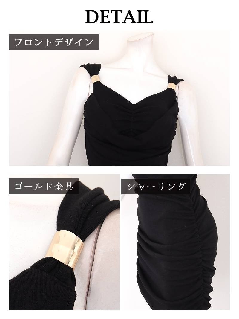 ゴールド金具付きドレープタイトミニドレス【RyuyuChick】