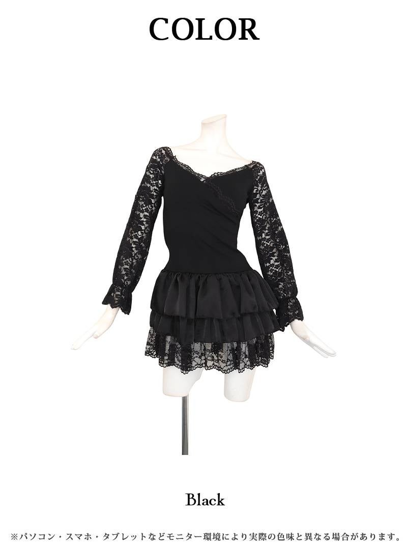 6. 袖付きのレースが色っぽい、ウエストリボンと3段フリルが可愛い地雷系ワンピース りせり 着用 キャバドレス【RyuyuChick】(M)(ブラック)