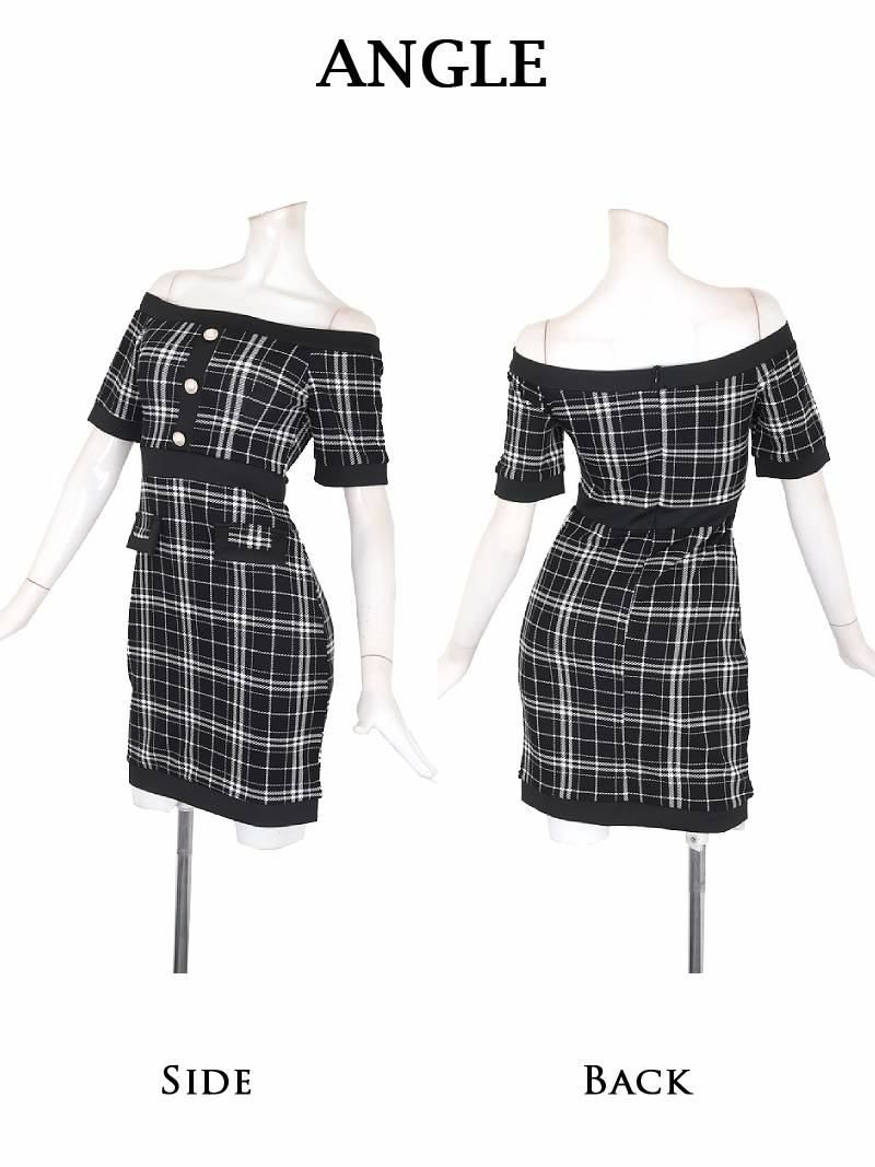 ミックスツイード細見せミニ丈キャバドレス【Ryuyu】(S/M/L)(ホワイト)