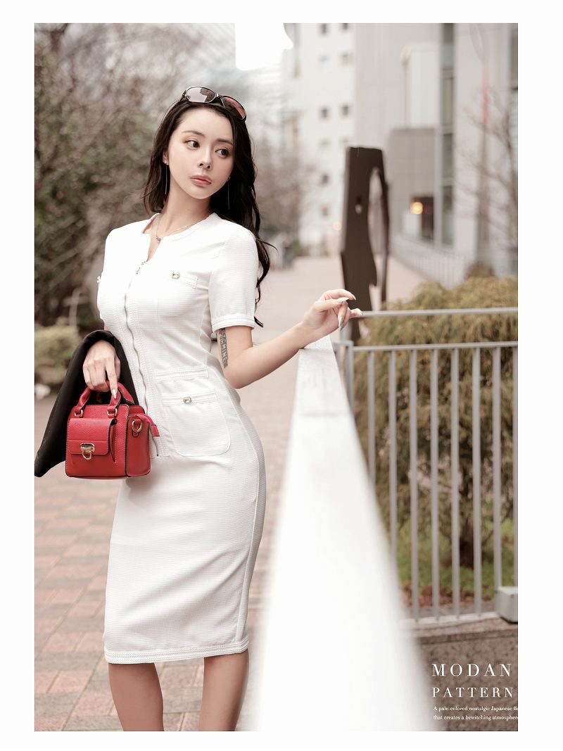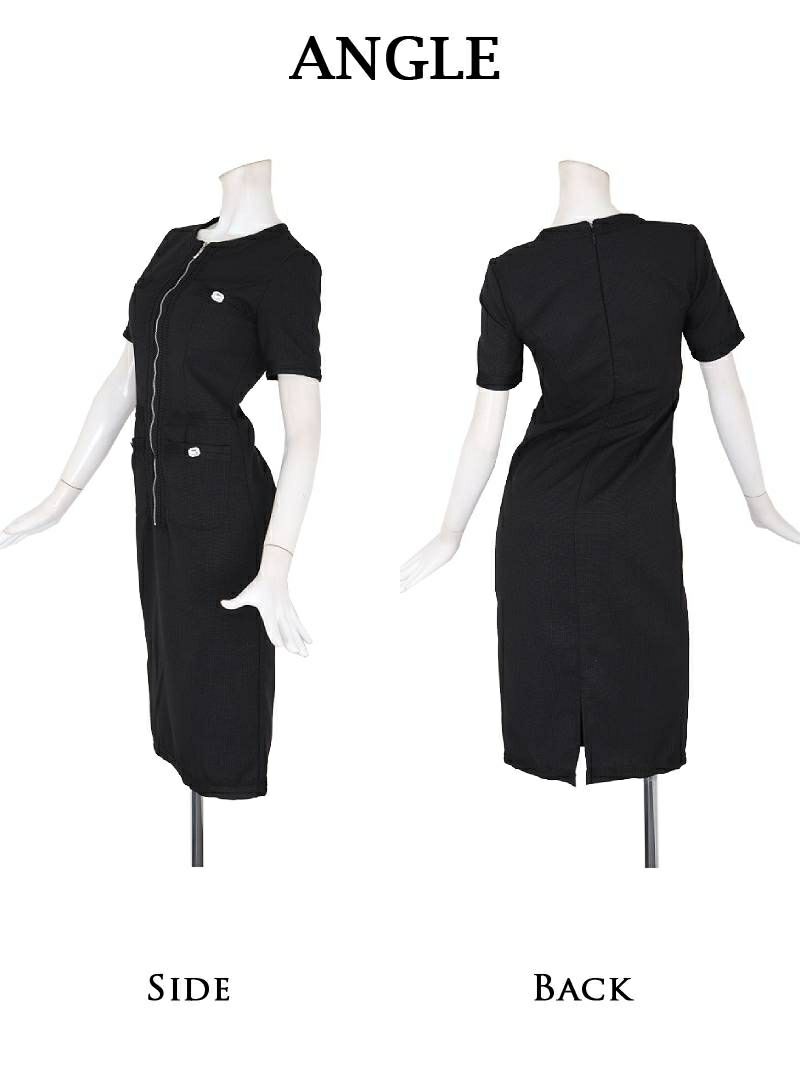 ライトツイードジップ韓国タイトワンピ KANO 着用 キャバワンピース【DAYS PIECE】(S/M/L/XL(2L))(ホワイト/ブラック)