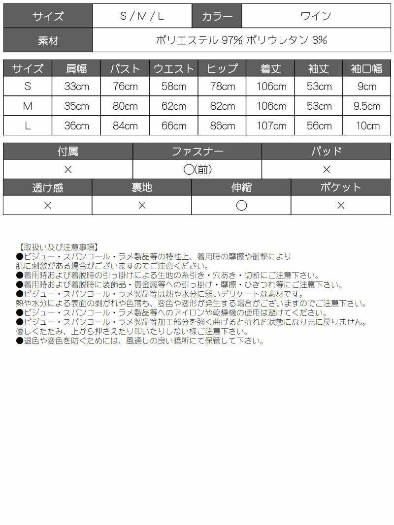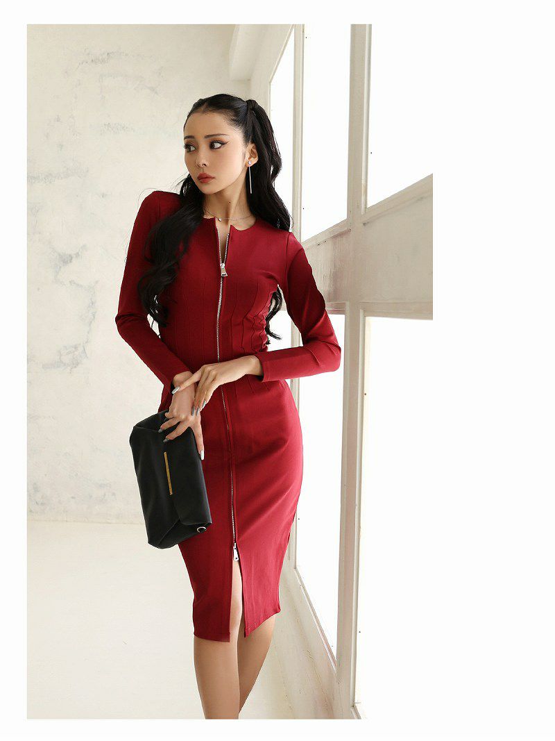 5. 膝丈フロントジップ長袖キャバワンピース KANO 着用 韓国ワンピース【DAYS PIECE】(S/M/L)(ワイン) ptpl