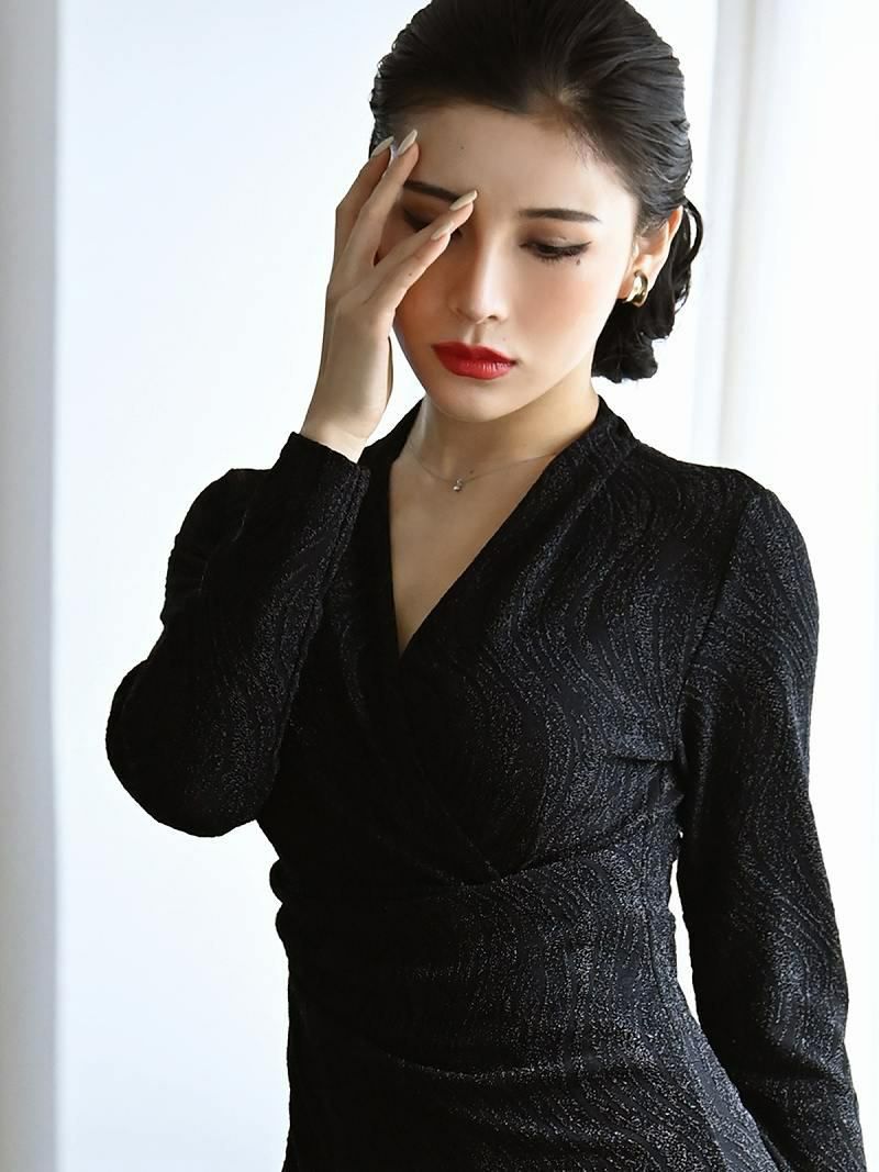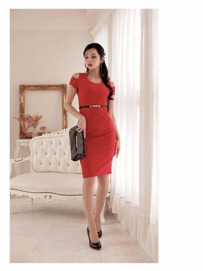 膝丈韓国風セレブワンピース 加賀美早紀 着用 キャバワンピース【Belsia】(S/M/L)(ブラック)