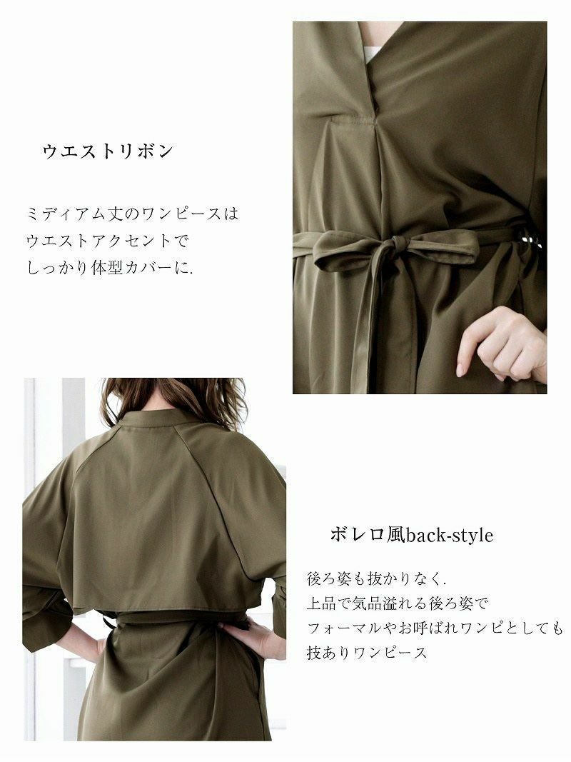 ウエストマークのウエストリボンがくびれを強調し、美シルエットを演出します。