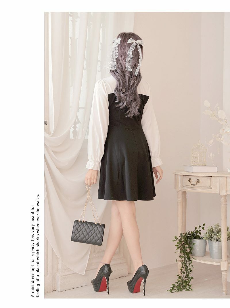 甘さたっぷりなドーリーワンピ 韓国風ドーリーフレアキャバワンピース あいさ 着用 キャバドレス【RyuyuChick】(S/M/L/XL(2L))(ブラック)