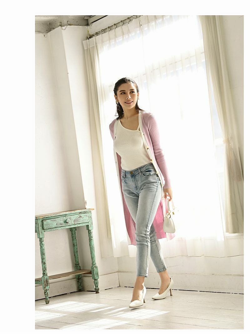 ボタンを締めて上品に袖付きワンピースとして、ボタンを開けてロングカーディガンとしても着用していただける着回し力抜群の韓国風ニットワンピースです。
