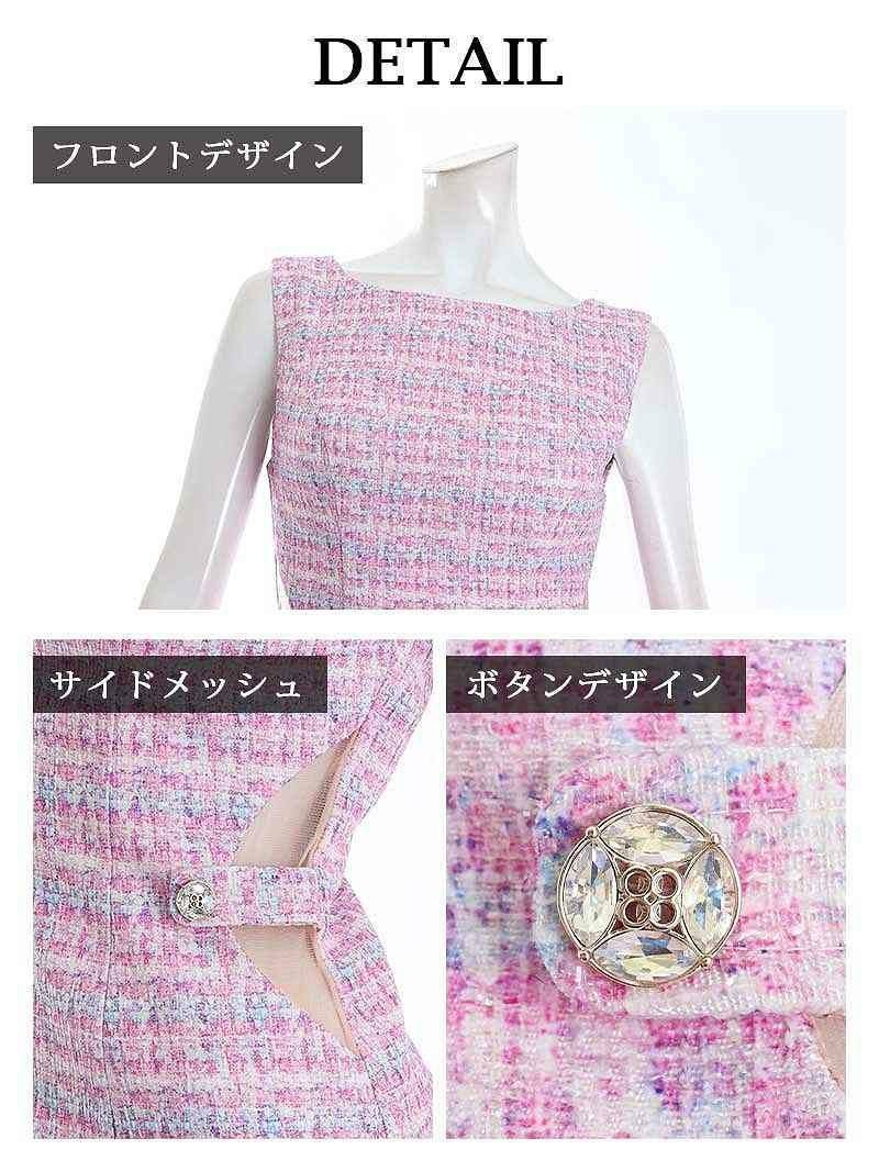 上品ツイード素材に、さりげないウエスト透けが色気をプラスしたAラインキャバドレス。