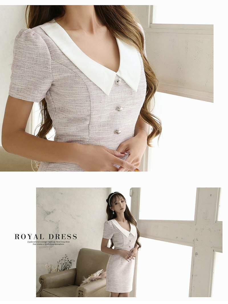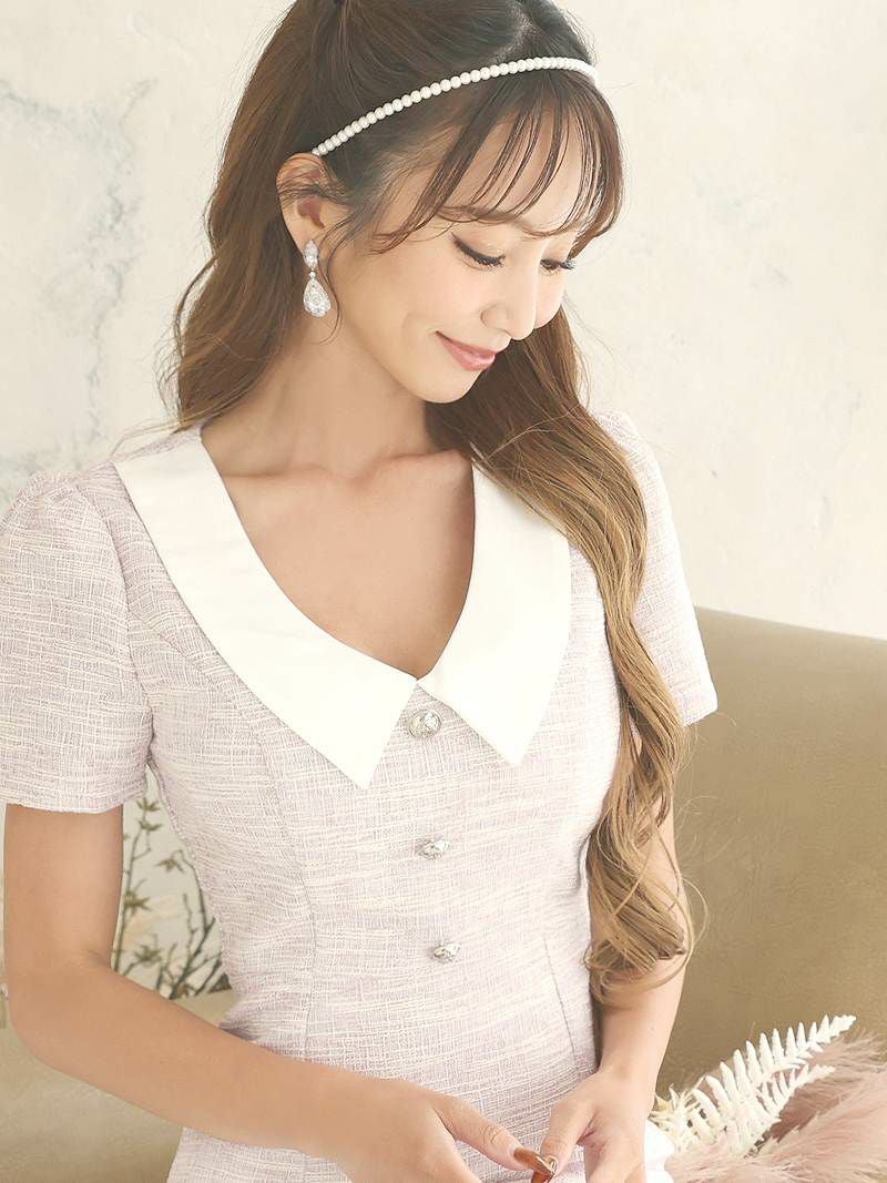 ビッグ襟付き韓国風ツィード美ラインキャバワンピース 武田静加 加賀美早紀 着用ラウンジワンピース【Belsia】