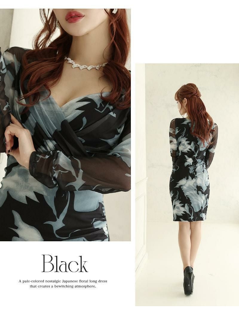 ※一部予約販売※シアー長袖プリント柄タイトミニドレス【Ryuyu】