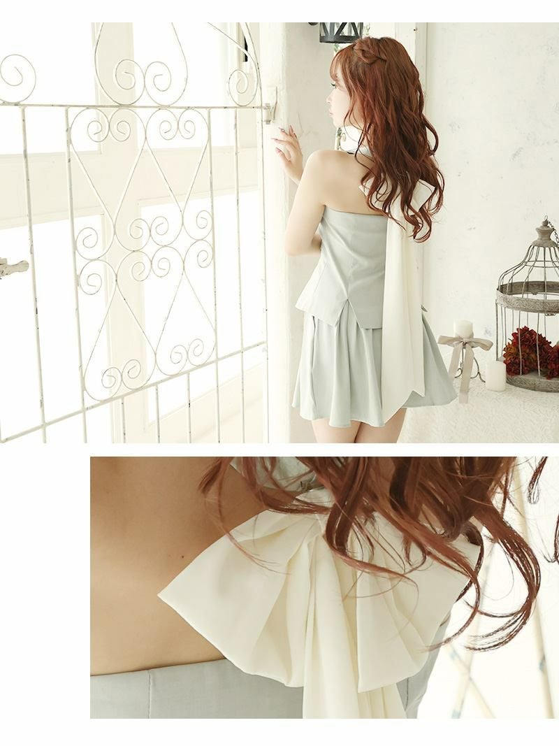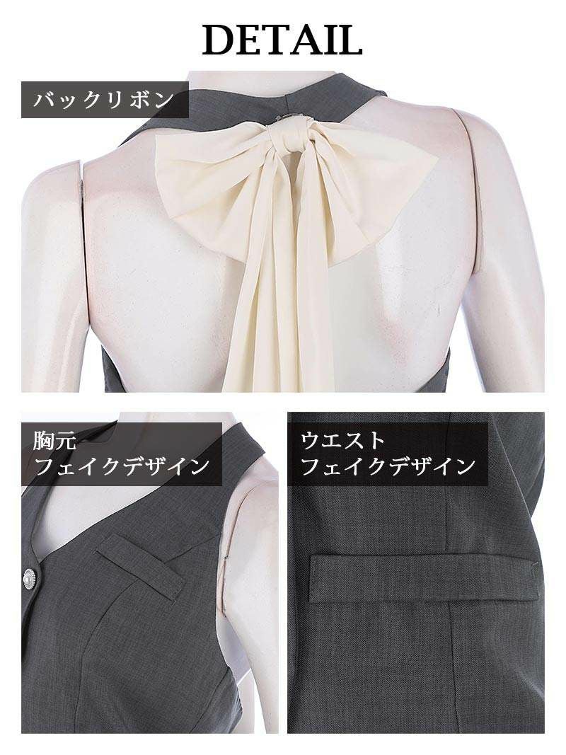 バックリボンホルダーベストセットアップドレス キャバドレス【Ryuyu】