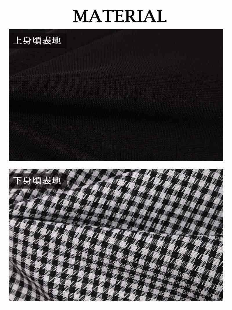 5. 先行予約割¥4380→¥4160!※一部予約販売※フリル袖チェック柄モノトーンキャバワンピース あいみん 着用 長袖キャバドレス【RyuyuChick】(M/L)(ブラック)