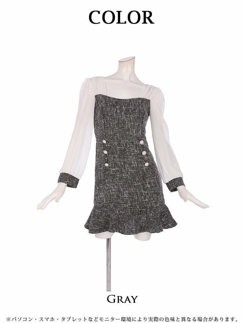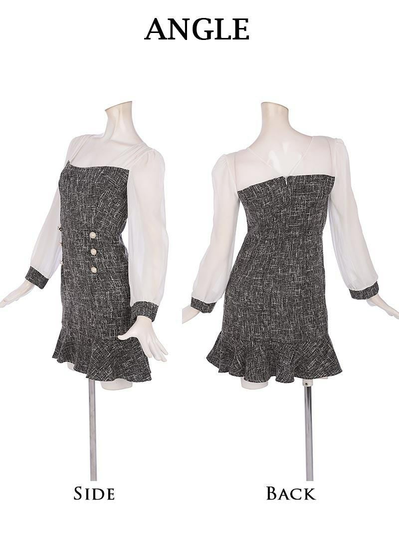 ツイード切り返し袖付きドーリーキャバワンピース りおん 着用 キャバドレス【RyuyuChick】