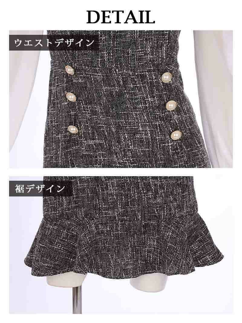 ツイードの切り返しが大人かわいいキャバワンピースです。