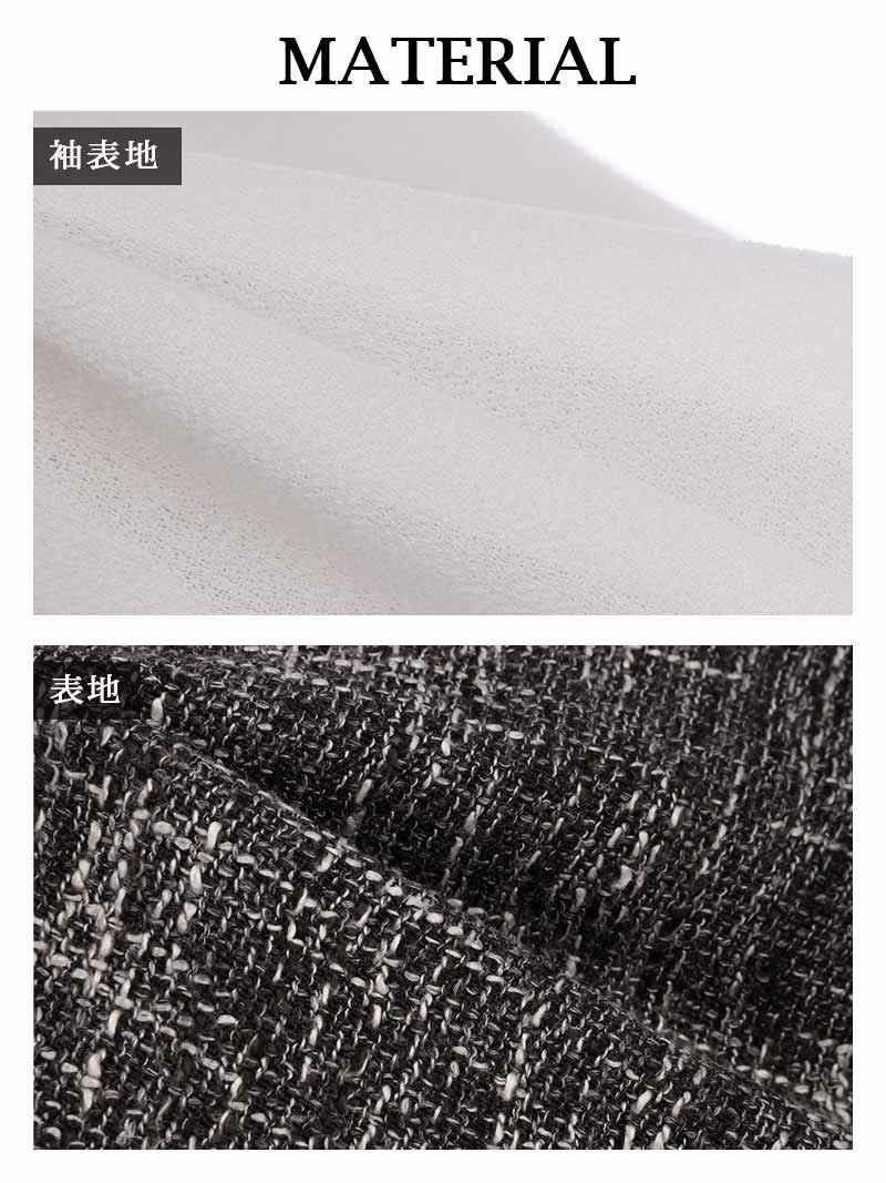 6. 先行予約割¥4380→¥4160!※一部予約販売※ツイード切り返し袖付きドーリーキャバワンピース りおん 着用 キャバドレス【RyuyuChick】(S/M/L/XL(2L))(グレー)