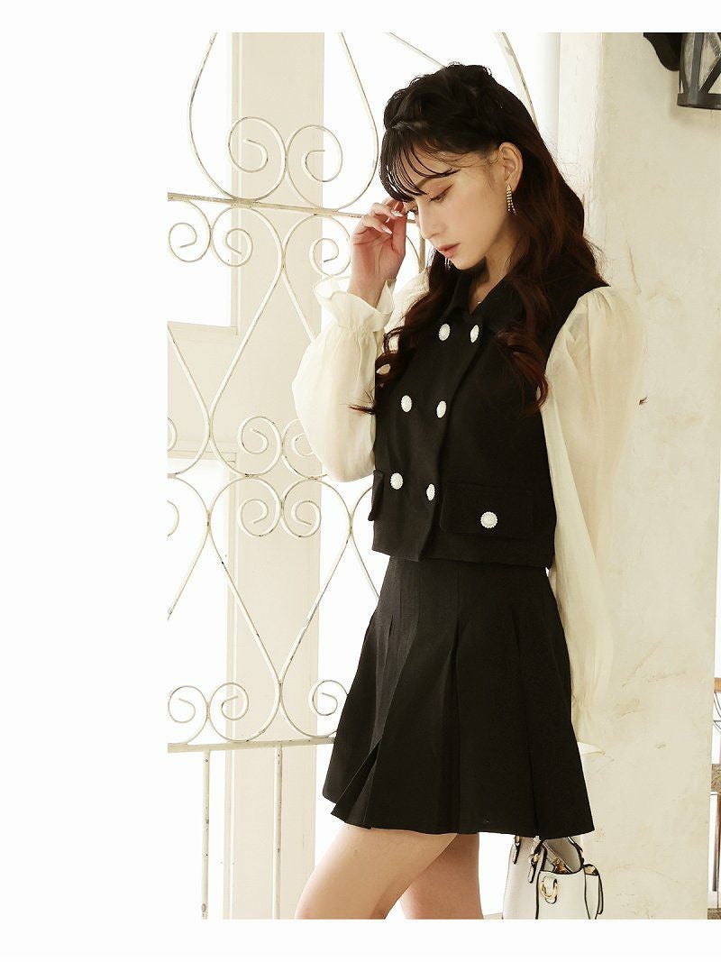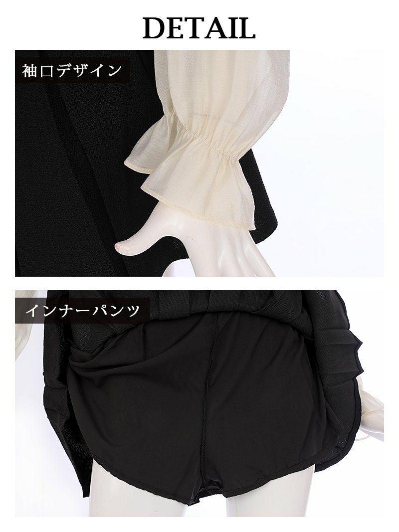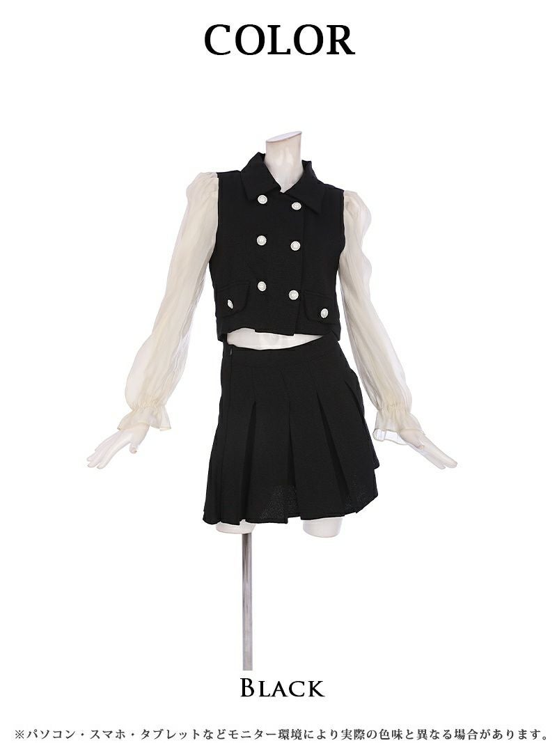 ふんわり袖×プリーツフレアでフェミニンに レイヤード風シフォン袖ツイードセットアップ 加賀美早紀 着用キャバドレス【Belsia】(M/L)(ブラック)