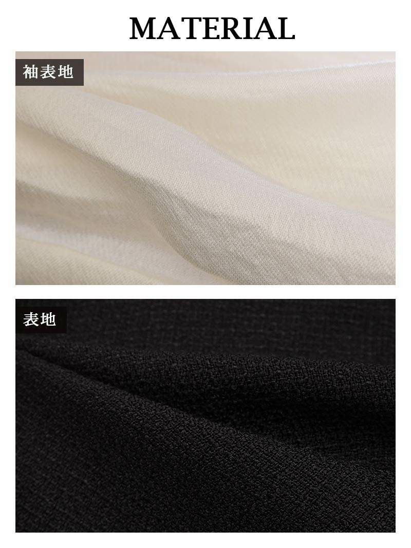 5. レイヤード風シフォン袖ツイードセットアップ 加賀美早紀 着用キャバドレス【Belsia】(M/L)(ブラック)