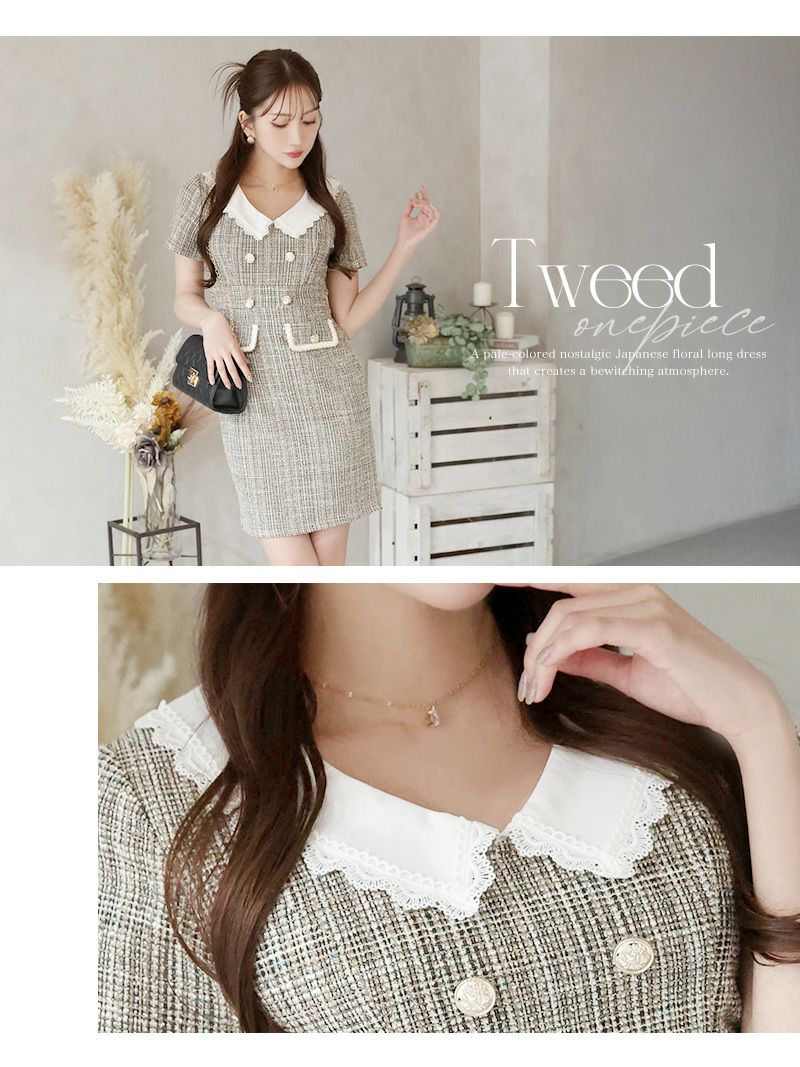 レース襟付きcuteツイードラブリーミニ丈キャバワンピース【Ryuyu】
