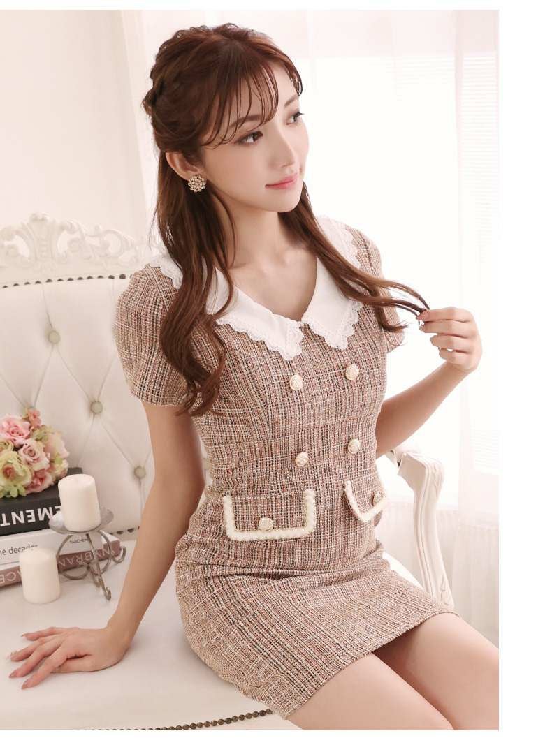 5. レース襟付きcuteツイードラブリーミニ丈キャバワンピース【Ryuyu】(S/M/L)(ブラウン/ピンク)